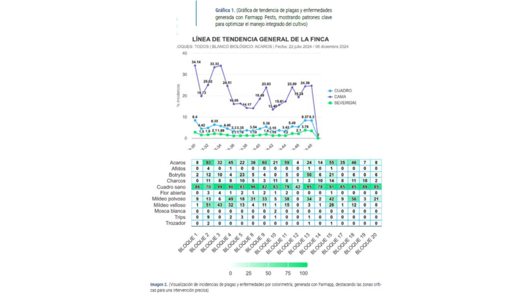Genera informes detallados sobre la situación de las plagas y enfermedades, que los agricultores pueden revisar para ajustar sus estrategias de manejo y control.